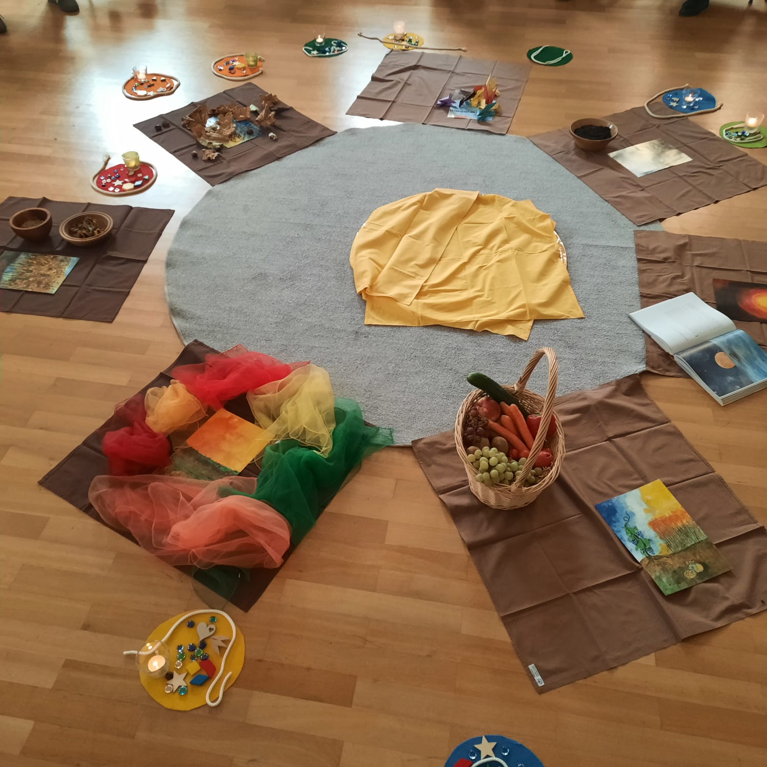 Wir freuen uns über die Sonne – sie ist immer da – wie auch die Liebe Gottes immer da ist. Mit diesen Gedanken haben die Kinder selber kleine Sonnen gelegt und dabei gesungen: „Gottes Liebe ist wie die Sonne, sie ist immer und überall da“.