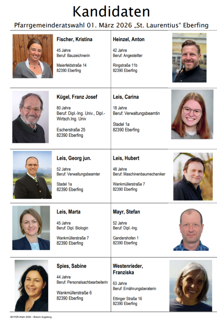 Briefwahlunterlagen können beim Pfarrbüro angefordert und in Eberfing