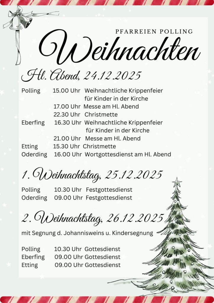 Weihnachten in den Pfarreien Polling Weitere Artikel ansehen Vorheriger BeitragAdvent Kinderkirche – Polling Nächster BeitragSilvester bis Erscheinung des Herrn